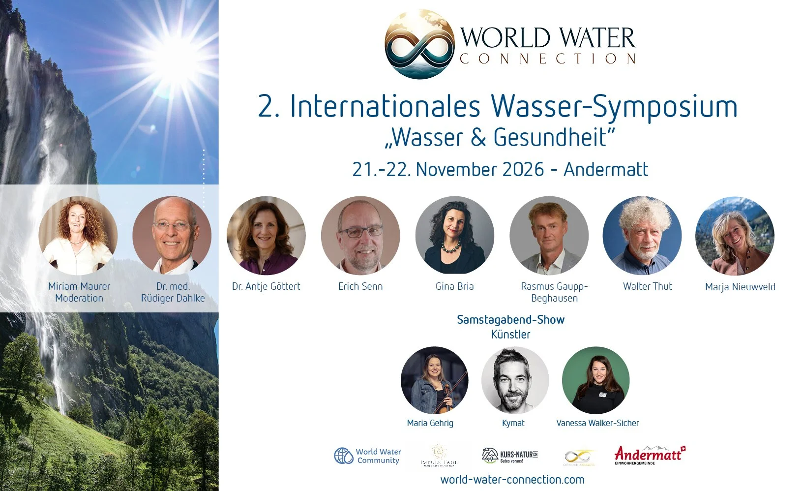 „Das internationale Wassersymposium soll einen Ort schaffen, an dem Menschen neue Perspektiven, praktische Impulse und erlebbare Zugänge zum Thema Wasser finden“, sagt die Initiantin. Im Mittelpunkt stehen sowohl der gesundheitliche Aspekt – etwa Trinkwasserqualität, Wohlbefinden und Prävention – als auch der emotionale Zugang zum Element Wasser.